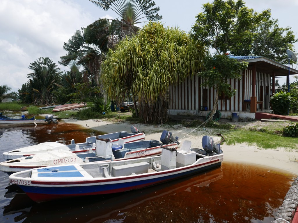 Jean-Rémy does not need a GPS or anything. He knows the river by heart. At some point, after some 3 hours of navigation, he takes a left turn on a narrow river branch. That’s a shortcut, and a well-kept secret – according to Google Earth, there is no water here and we should be in the forest. One hour later, suddenly the landscape becomes a hundred times wider: we have reached the Nkomi lagoon, which is only separated from the ocean by a 2-kilometer stretch of road. The last instants of the trip seem to last forever… the sound of the engines is buzzing in our heads and we badly need to stretch our legs. But there we are, after 5 hours on the river: Omboué, at last. A perfectly unspectacular and friendly little place.