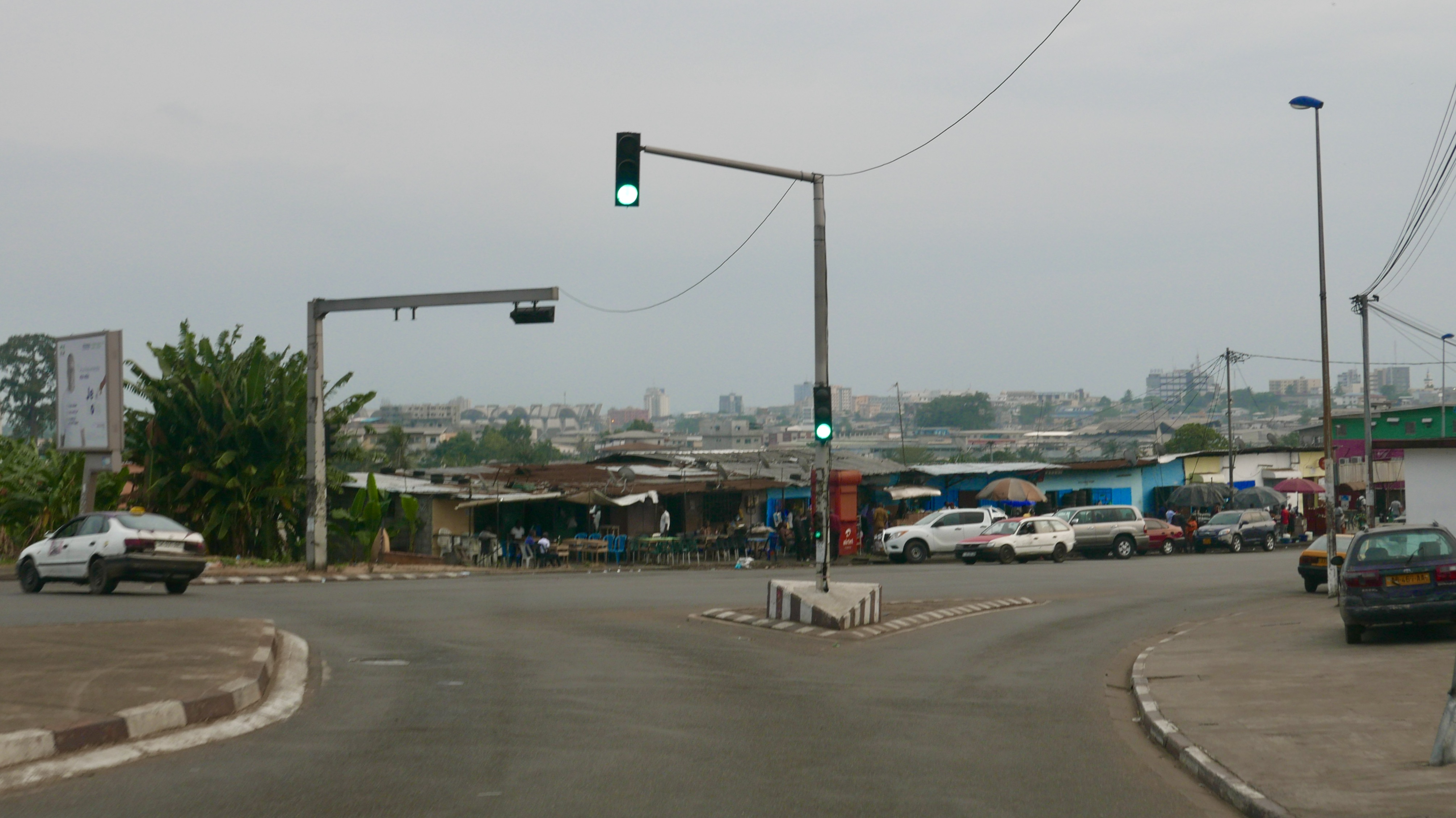 Nature is strong in Gabon, even asphalt cannot prevent plants and grass from growing, so even in the most urban sections of Libreville you will find patches of green. Some of these patches are bigger than others, and the one below may be the biggest little forest in the city. It lies just beyond our balcony and hosts bats, grey parrots, kingfishers and dozens of multicoloured birds species, frogs, and an entire orchestra of insects that starts playing everyday at dusk. This view may well have lasted us a lifetime.